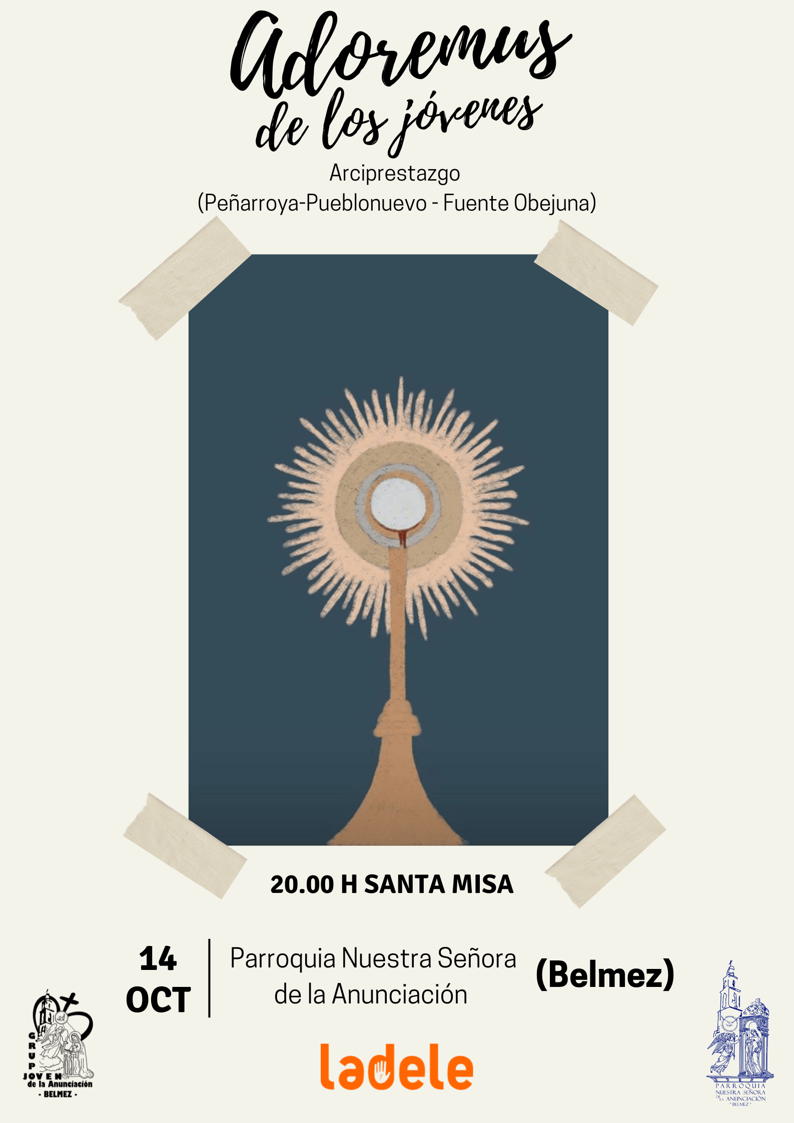 El Grupo de Jóvenes de la Anunciación de Belmez organiza en colaboración de la Delegación de Juventud el viernes dia 14 de octubre un Adoremus de los jóvenes que unirá al Arciprestazgo de Peñarroya-Pueblonuevo y Fuente Obejuna.